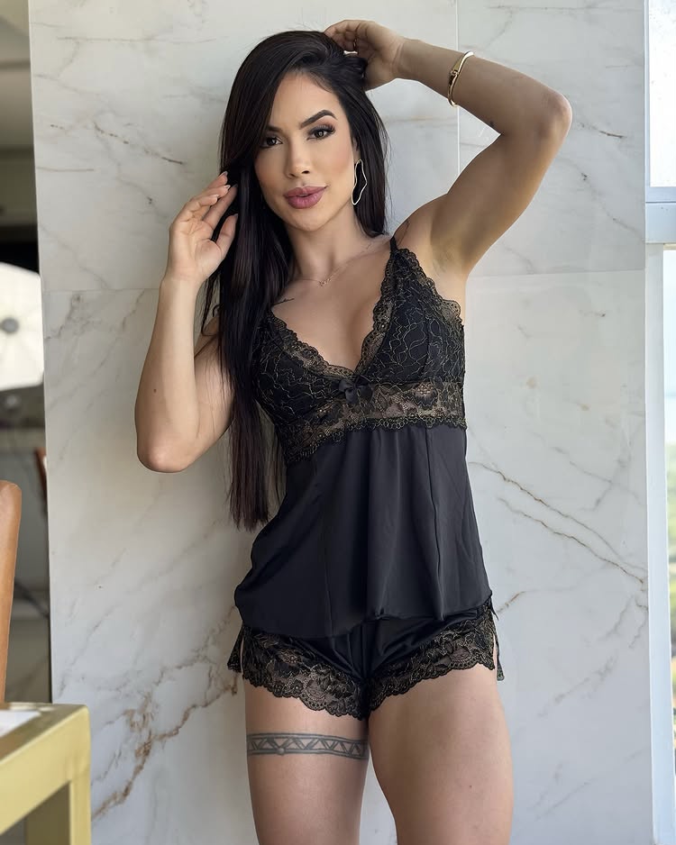 Baby Doll Luxo, confeccionado em alta qualidade. Seu design em modelo short aberto proporciona liberdade de movimento, enquanto as alças reguláveis garantem o ajuste ideal para os tamanhos P (36), M (38-40), G (42-44) e GG (46).